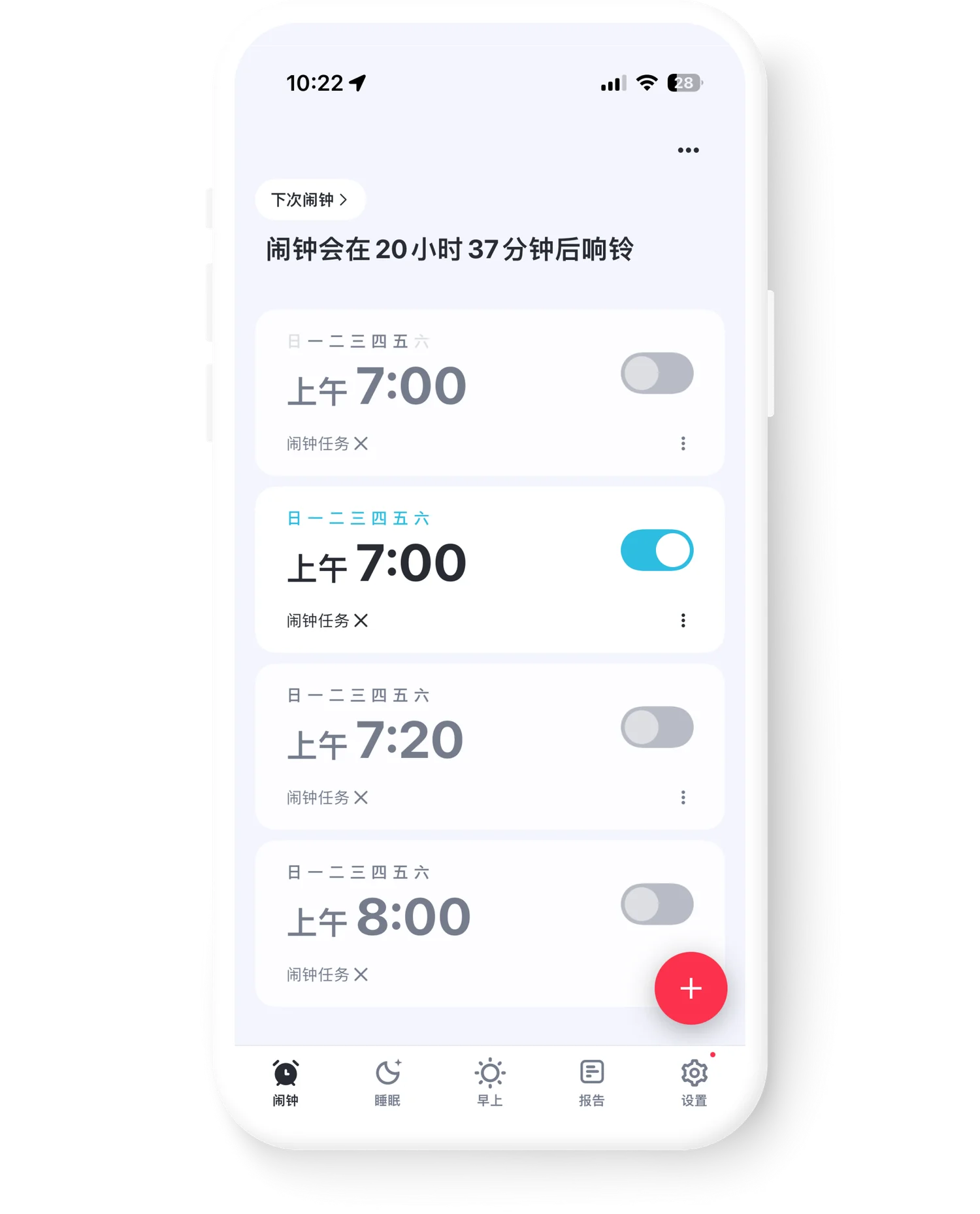 使命闹钟 的睡眠分析功能可跟踪用户的睡眠模式并记录睡眠期间发生的打鼾声。